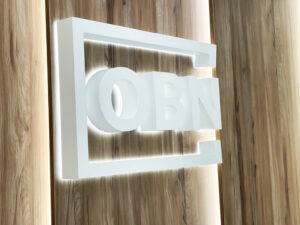 - Exterior: especialmente en los rótulos de fachadas, con diferentes acabados o incluyendo luz, destacando su relieve y aumentando su visibilidad.